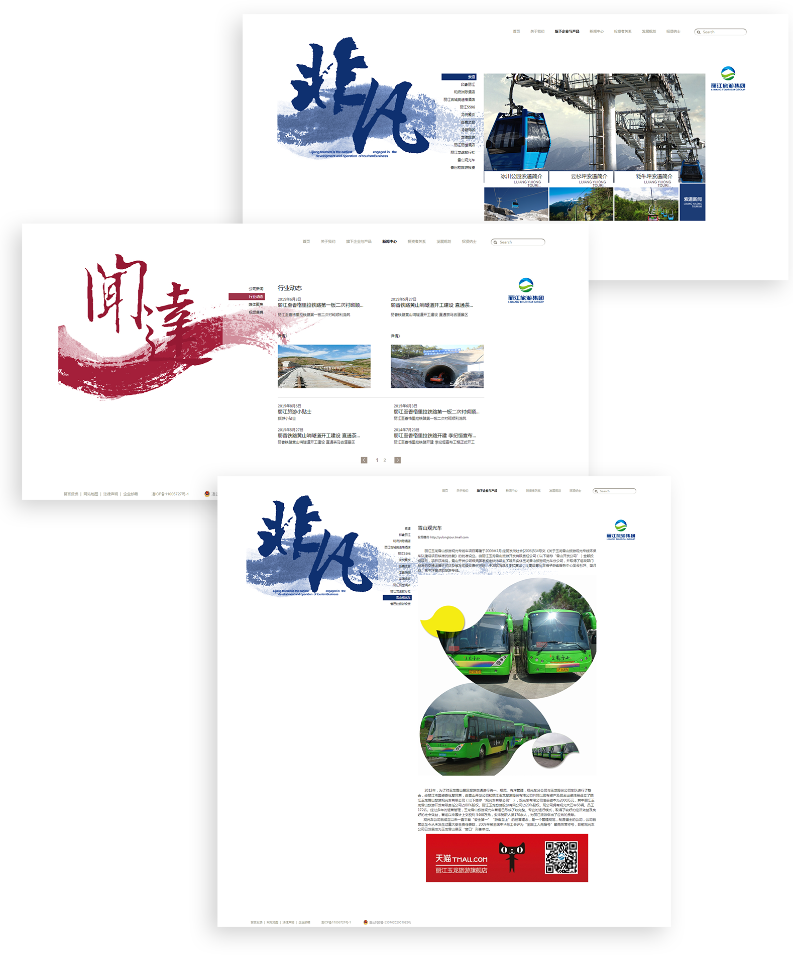 新鸿儒利用全屏背景图的首页设计方式,展示丽江玉龙的企业品牌形象以及丽江特色美景,将传统与时尚结合,将古典与现代结合,成功打造了一个高品质旅游类企业官网。